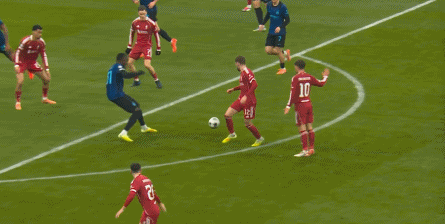 必須要說,本場比賽的小圖拉姆發揮比較一般,沒能在利物浦的雙中衛身上打出多少優勢,加上勞塔羅-馬丁內斯的回撤,也因為利物浦擺出了菱形中場的問題,效果不及平常,這使得國際米蘭的進攻效率出現了下降。